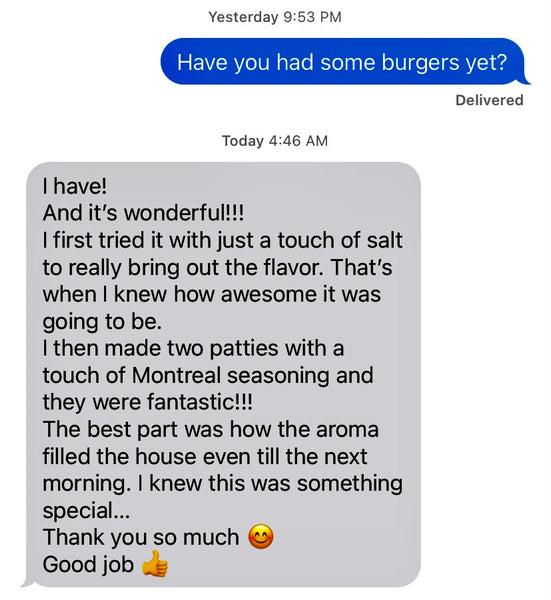 A customer favorite! Our Black Angus Ground Beef is smooth, rich and packed full of flavor. When making ground beef we process the entire steer into ground beef so all of the very best is is packed into the best burger not just the leftovers.